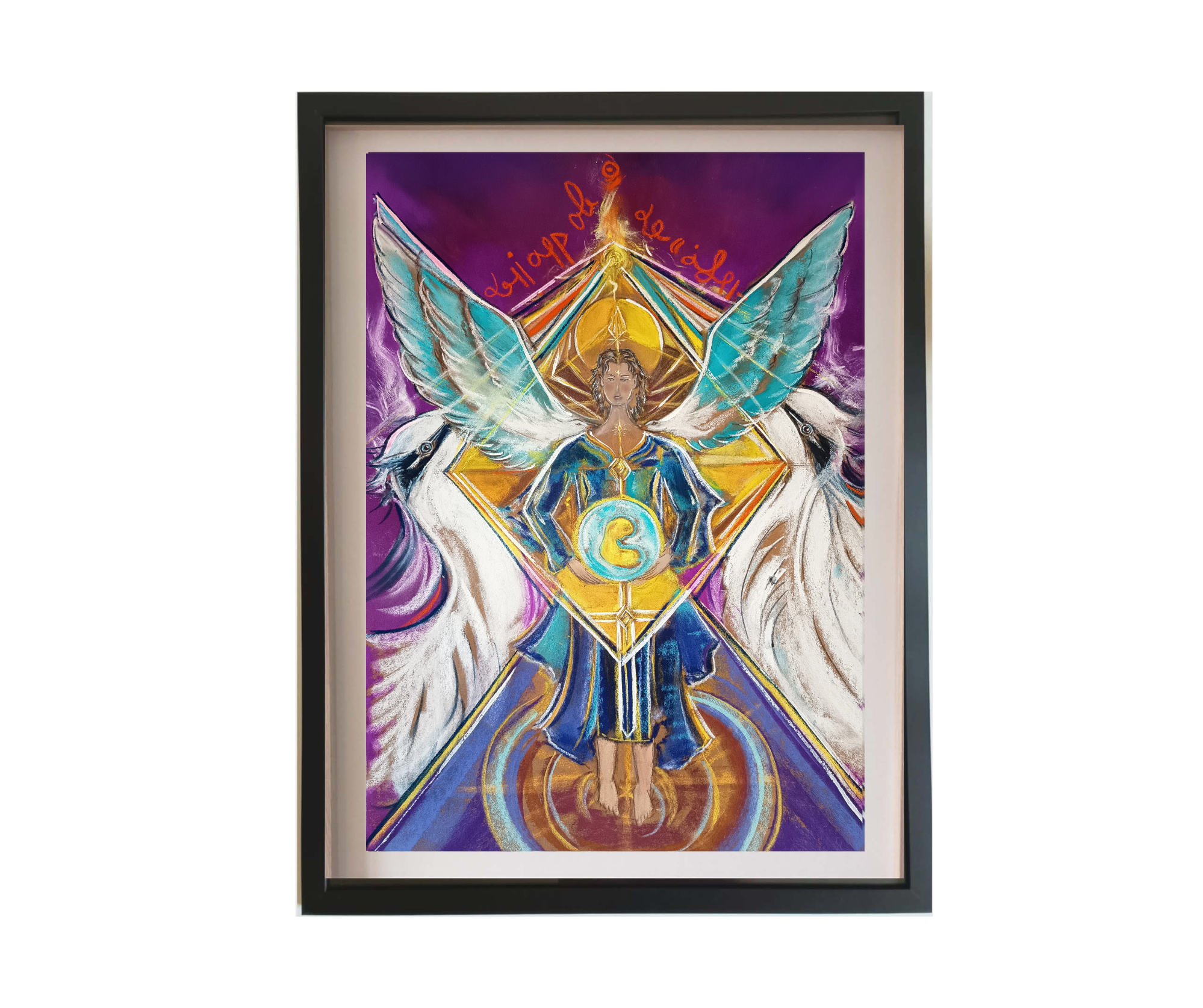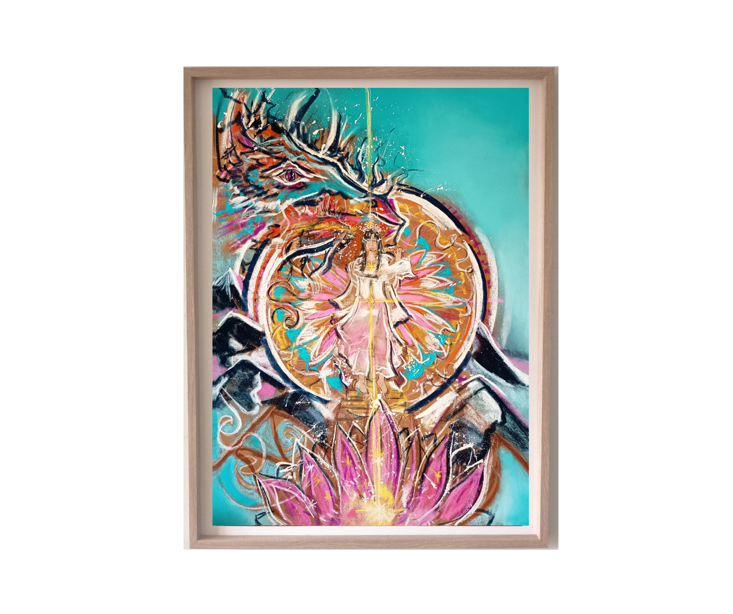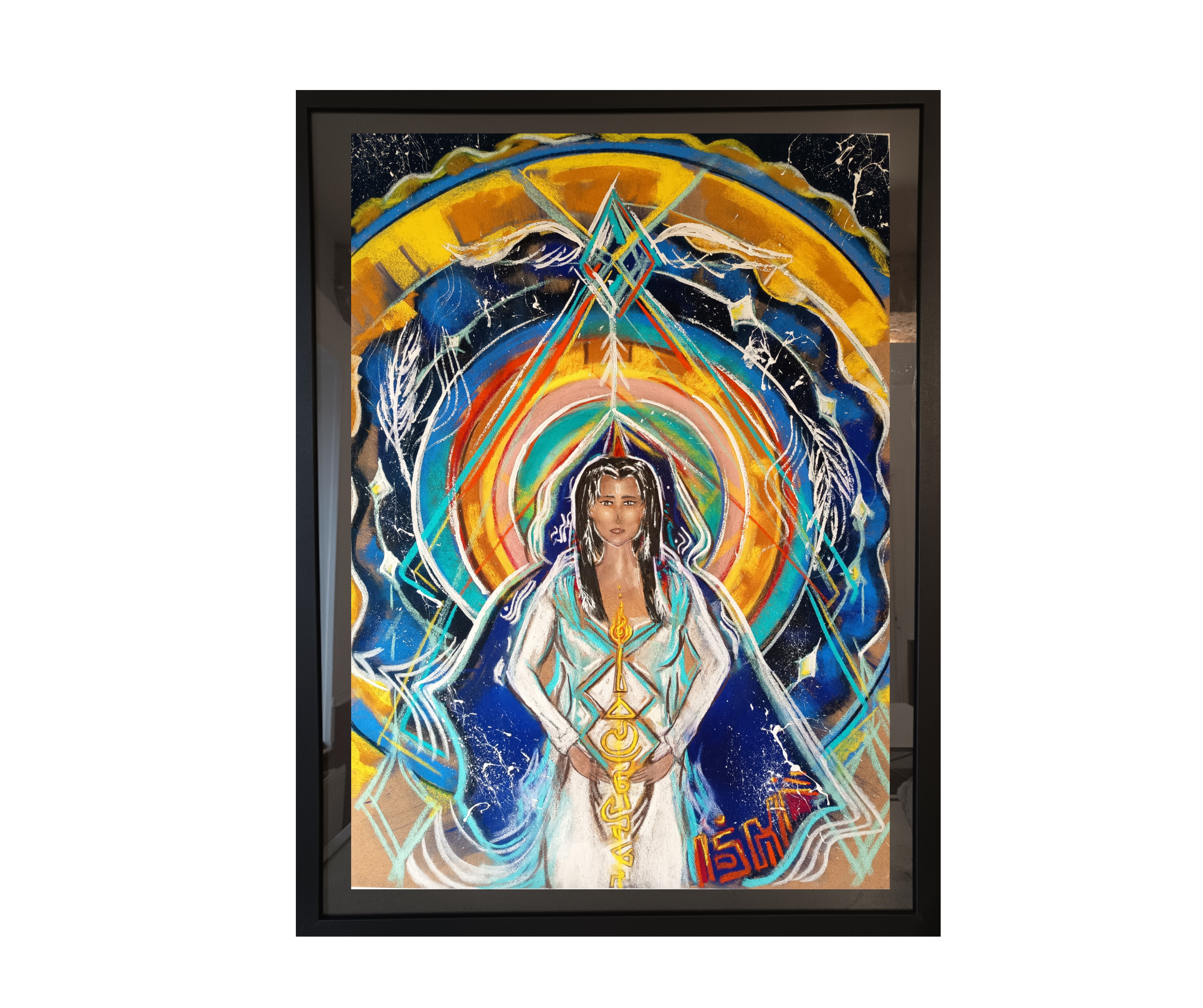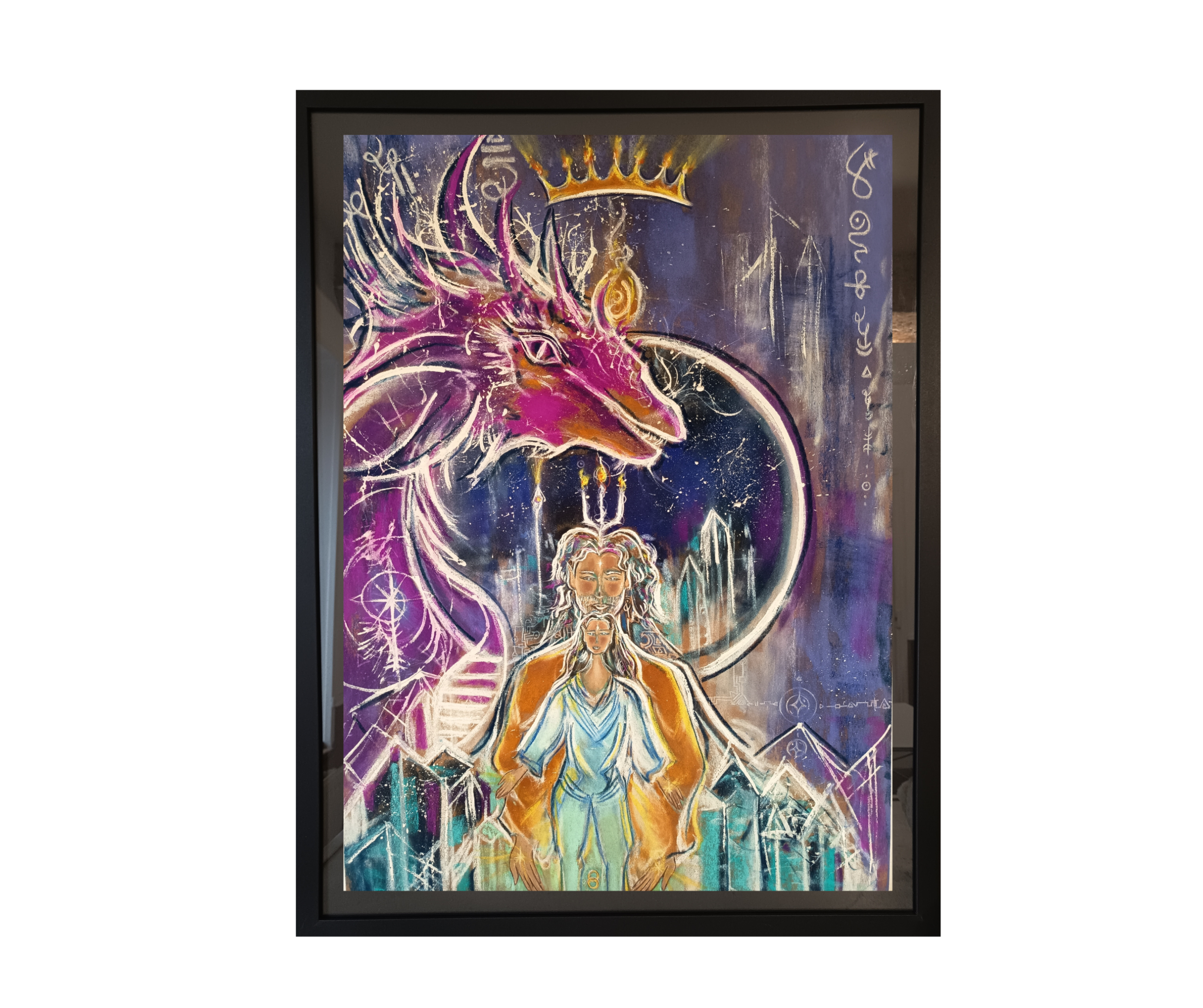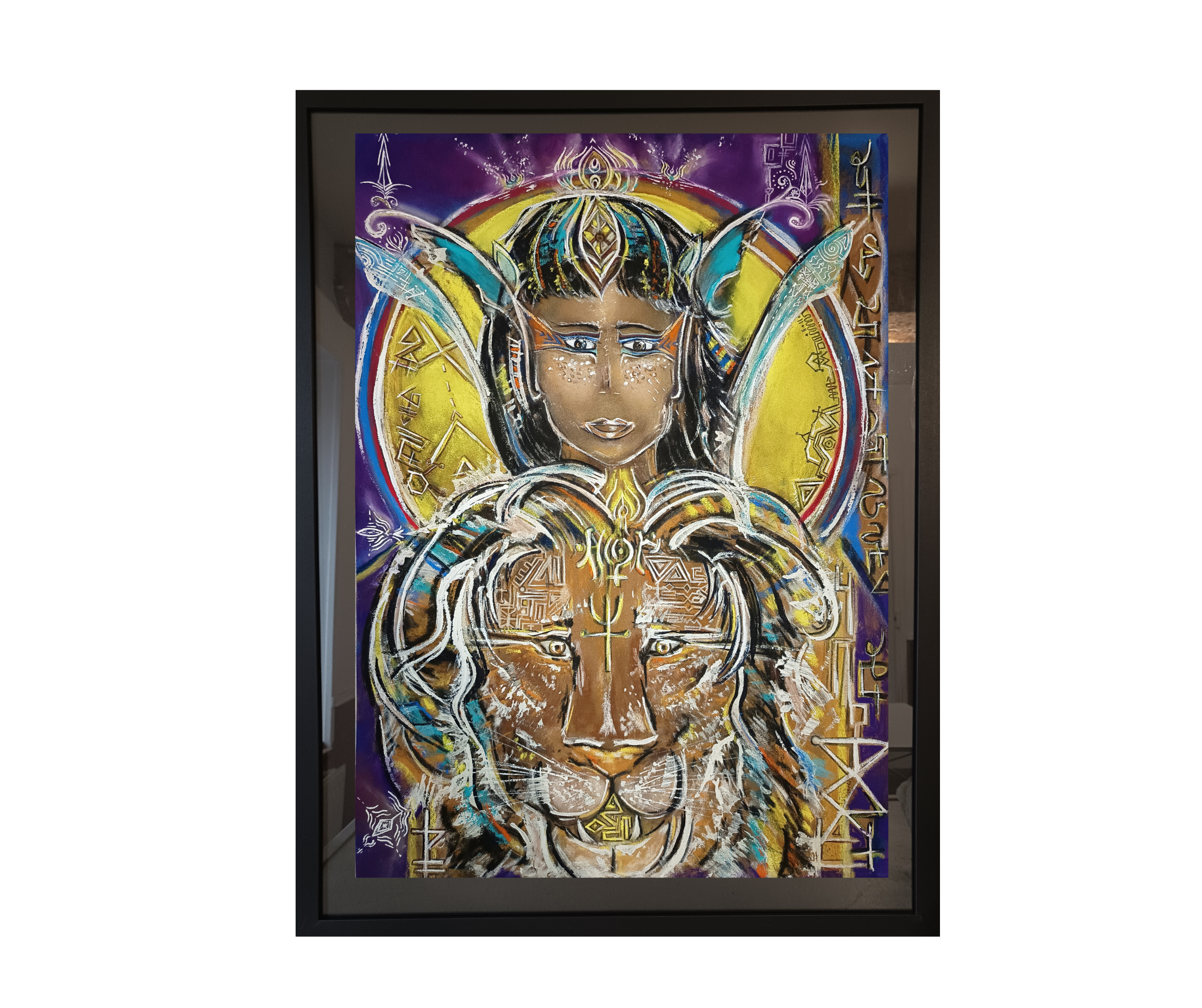Dessin pastel sec 30 x 30cm (présenté dans un cadre 64x84 cm avec passe-partout)
